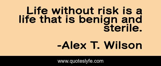 This page presents the quote "Life without risk is a life that is benign and sterile.". Author of this quote is Alex T. Wilson. .