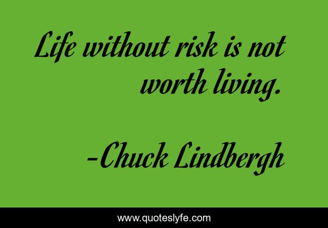 This page presents the quote "Life without risk is not worth living.". Author of this quote is Chuck Lindbergh. This quote is about lifetime-version, motivate, inspire, action-handbook, motivational-inspirational, inspirational-living, motivational, motivational-living, motivation,.
