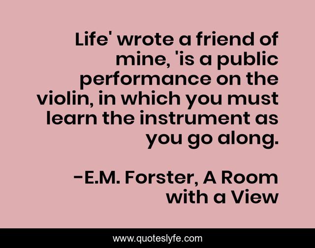 This page presents the quote "Life' wrote a friend of mine, 'is a public performance on the violin, in which you must learn the instrument as you go along.". Author of this quote is E.M. Forster, A Room with a View. This quote is about violin, life, metaphor, 1908,.