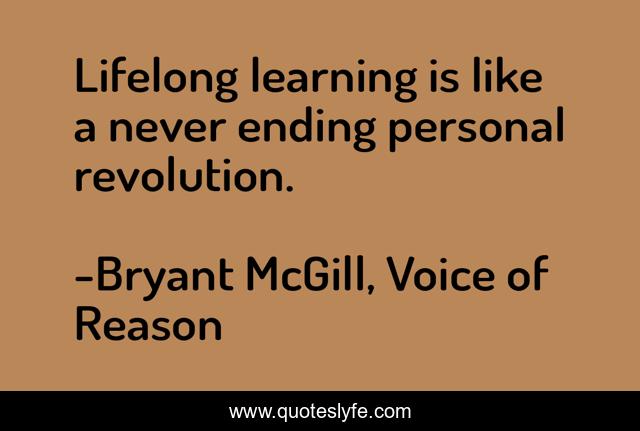 This page presents the quote "Lifelong learning is like a never ending personal revolution.". Author of this quote is Bryant McGill, Voice of Reason. This quote is about revolution, personal-growth-personal, learning,.