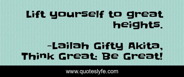 "Lailah Gifty Akita, Think Great: Be Great! Quotes." Quoteslyfe.com, 2025. Fri. 05 Dec. 2025. <https://www.quoteslyfe.com/quote/Lift-yourself-to-great-heights-34651>.