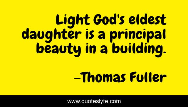 This page presents the quote "Light God's eldest daughter is a principal beauty in a building.". Author of this quote is Thomas Fuller. This quote is about architecture, architects,.
