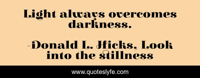 "Donald L. Hicks, Look into the stillness Quotes." Quoteslyfe.com, 2025. Sun. 07 Dec. 2025. <https://www.quoteslyfe.com/quote/Light-always-overcomes-darkness-118756>.