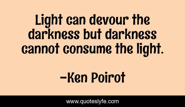 "Ken Poirot Quotes." Quoteslyfe.com, 2025. Fri. 05 Dec. 2025. <https://www.quoteslyfe.com/quote/Light-can-devour-the-darkness-but-darkness-118289>.
