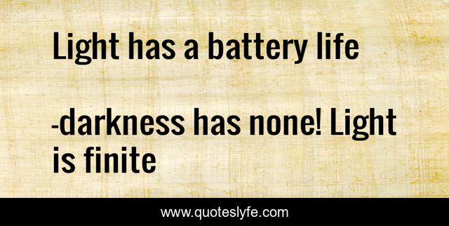 "darkness has none! Light is finite Quotes." Quoteslyfe.com, 2025. Tue. 09 Dec. 2025. <https://www.quoteslyfe.com/quote/Light-has-a-battery-life-119048>.