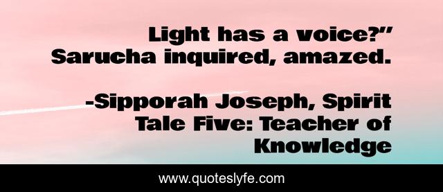 "Sipporah Joseph, Spirit Tale Five: Teacher of Knowledge Quotes." Quoteslyfe.com, 2025. Mon. 08 Dec. 2025. <https://www.quoteslyfe.com/quote/Light-has-a-voice-Sarucha-inquired-amazed-101081>.