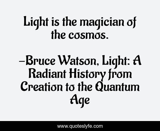 "Bruce Watson, Light: A Radiant History from Creation to the Quantum Age Quotes." Quoteslyfe.com, 2025. Sat. 06 Dec. 2025. <https://www.quoteslyfe.com/quote/Light-is-the-magician-of-the-cosmos-44306>.