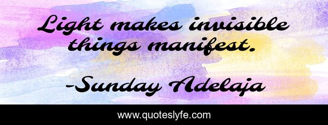 This page presents the quote "Light makes invisible things manifest.". Author of this quote is Sunday Adelaja. This quote is about invisible, light, manifest,.