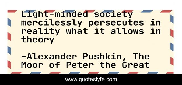 This page presents the quote "Light-minded society mercilessly persecutes in reality what it allows in theory". Author of this quote is Alexander Pushkin, The Moor of Peter the Great. This quote is about society, hypocrisy,.