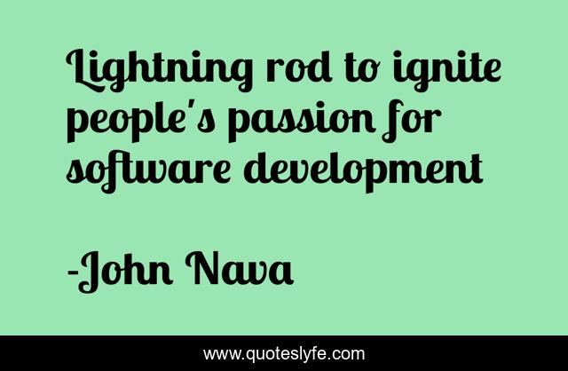 This page presents the quote "Lightning rod to ignite people's passion for software development". Author of this quote is John Nava. This quote is about development, lightning-rod, passion, software,.