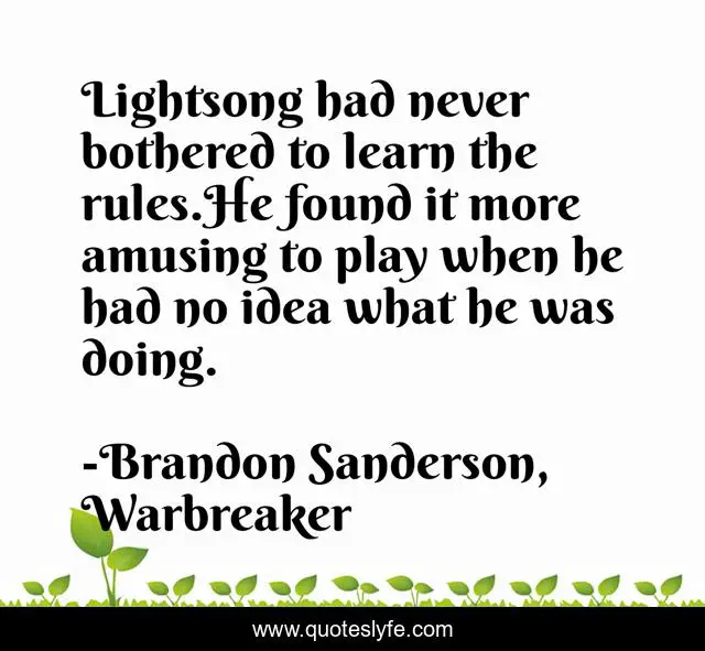 This page presents the quote "Lightsong had never bothered to learn the rules.He found it more amusing to play when he had no idea what he was doing.". Author of this quote is Brandon Sanderson, Warbreaker. This quote is about rules, games,.