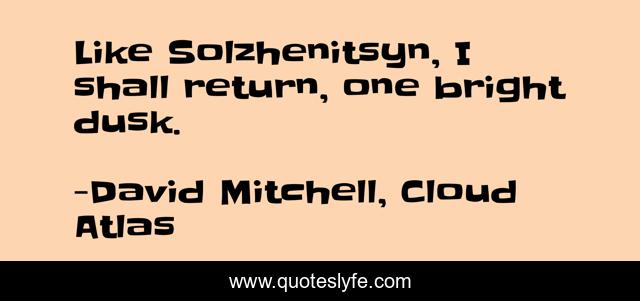"David Mitchell, Cloud Atlas Quotes." Quoteslyfe.com, 2025. Fri. 05 Dec. 2025. <https://www.quoteslyfe.com/quote/Like-Solzhenitsyn-I-shall-return-one-bright-281394>.