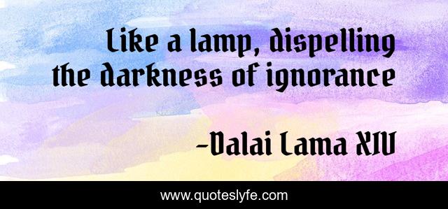 This page presents the quote "Like a lamp, dispelling the darkness of ignorance". Author of this quote is Dalai Lama XIV. This quote is about simile, buddhism,.