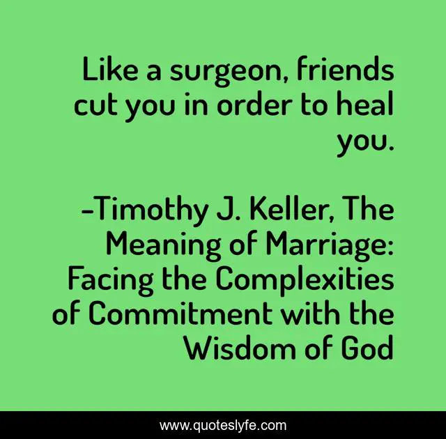 "Timothy J. Keller, The Meaning of Marriage: Facing the Complexities of Commitment with the Wisdom of God Quotes." Quoteslyfe.com, 2025. Mon. 08 Dec. 2025. <https://www.quoteslyfe.com/quote/Like-a-surgeon-friends-cut-you-in-127213>.