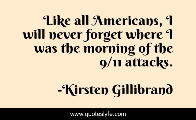 This page presents the quote "Like all Americans, I will never forget where I was the morning of the 9/11 attacks.". Author of this quote is Kirsten Gillibrand. This quote is about never forget, forget,.