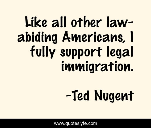 This page presents the quote "Like all other law-abiding Americans, I fully support legal immigration.". Author of this quote is Ted Nugent. This quote is about support, immigration, like,.