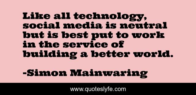 "Simon Mainwaring Quotes." Quoteslyfe.com, 2025. Tue. 09 Dec. 2025. <https://www.quoteslyfe.com/quote/Like-all-technology-social-media-is-neutral-291171>.