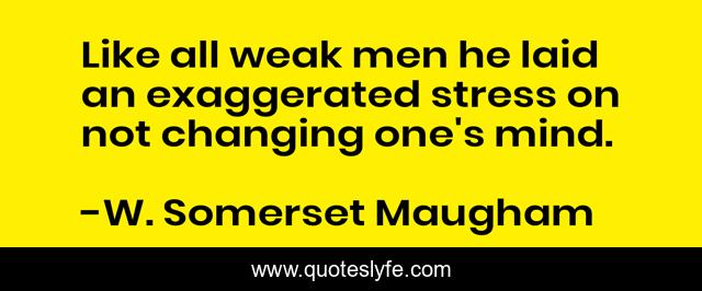This page presents the quote "Like all weak men he laid an exaggerated stress on not changing one's mind.". Author of this quote is W. Somerset Maugham. This quote is about positive, confidence, creating, change,.