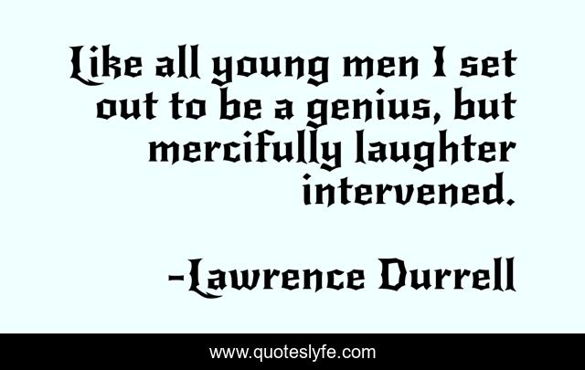 This page presents the quote "Like all young men I set out to be a genius, but mercifully laughter intervened.". Author of this quote is Lawrence Durrell. This quote is about genius, laughter, young,.