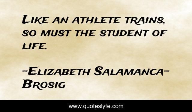 This page presents the quote "Like an athlete trains, so must the student of life.". Author of this quote is Elizabeth Salamanca-Brosig. This quote is about parents-and-children, life-lessons, success, sustainable-living, inspirational-living, christian-living, inspirational, healthy-living, sustainable,.