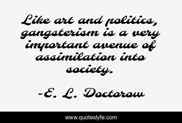 This page presents the quote "Like art and politics, gangsterism is a very important avenue of assimilation into society.". Author of this quote is E. L. Doctorow. This quote is about politics, important, society,.
