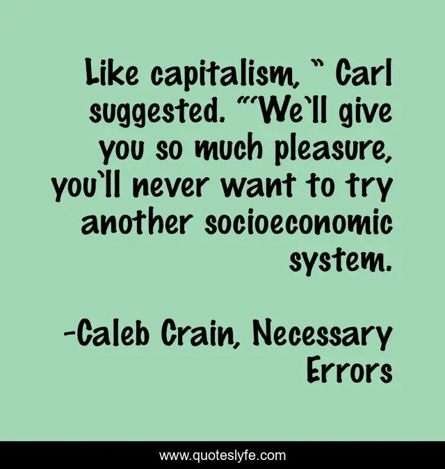 This page presents the quote "Like capitalism, ” Carl suggested. “‘We’ll give you so much pleasure, you’ll never want to try another socioeconomic system.". Author of this quote is Caleb Crain, Necessary Errors. .