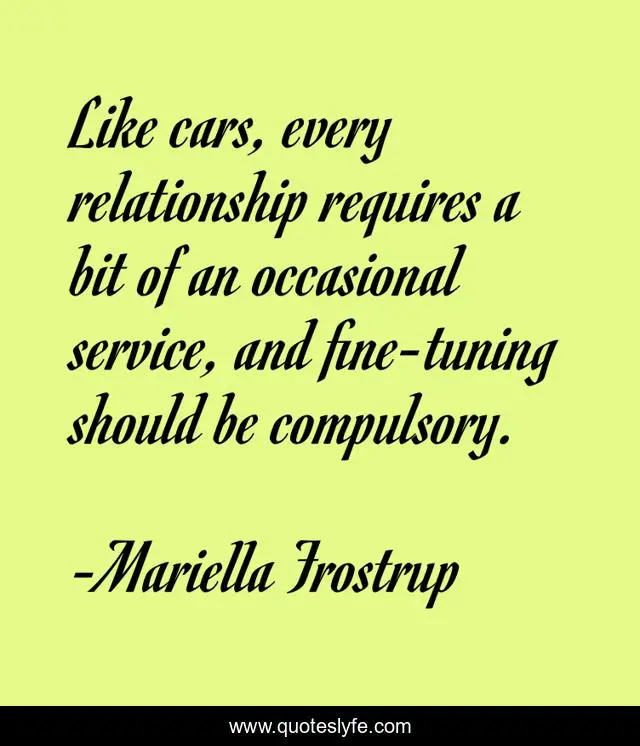 "Mariella Frostrup Quotes." Quoteslyfe.com, 2025. Sat. 06 Dec. 2025. <https://www.quoteslyfe.com/quote/Like-cars-every-relationship-requires-a-bit-322989>.