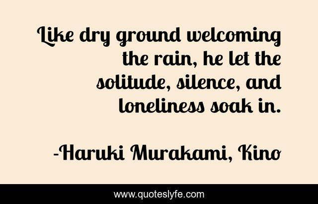 This page presents the quote "Like dry ground welcoming the rain, he let the solitude, silence, and loneliness soak in.". Author of this quote is Haruki Murakami, Kino. .