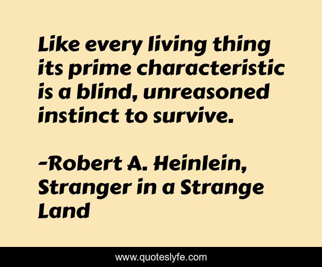 This page presents the quote "Like every living thing its prime characteristic is a blind, unreasoned instinct to survive.". Author of this quote is Robert A. Heinlein, Stranger in a Strange Land. .