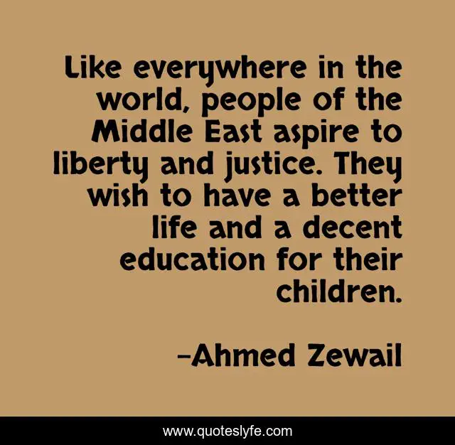 This page presents the quote "Like everywhere in the world, people of the Middle East aspire to liberty and justice. They wish to have a better life and a decent education for their children.". Author of this quote is Ahmed Zewail. This quote is about justice, life, children,.
