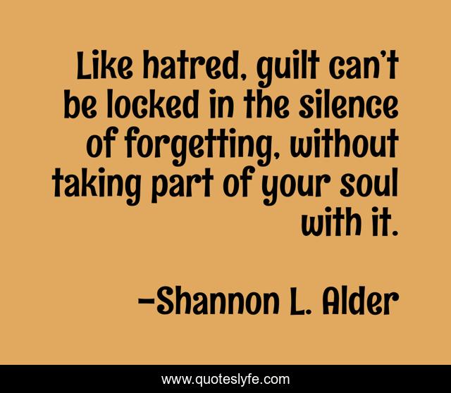 This page presents the quote "Like hatred, guilt can’t be locked in the silence of forgetting, without taking part of your soul with it.". Author of this quote is Shannon L. Alder. This quote is about dwelling, not-forgetting, heartless, forgetting, hardened-heart, guilt, hatred, silence, inaction,.