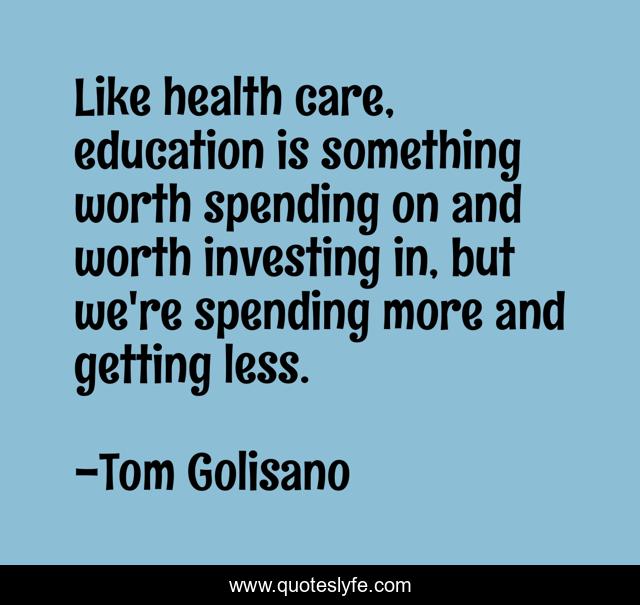 This page presents the quote "Like health care, education is something worth spending on and worth investing in, but we're spending more and getting less.". Author of this quote is Tom Golisano. This quote is about health care, education, care,.