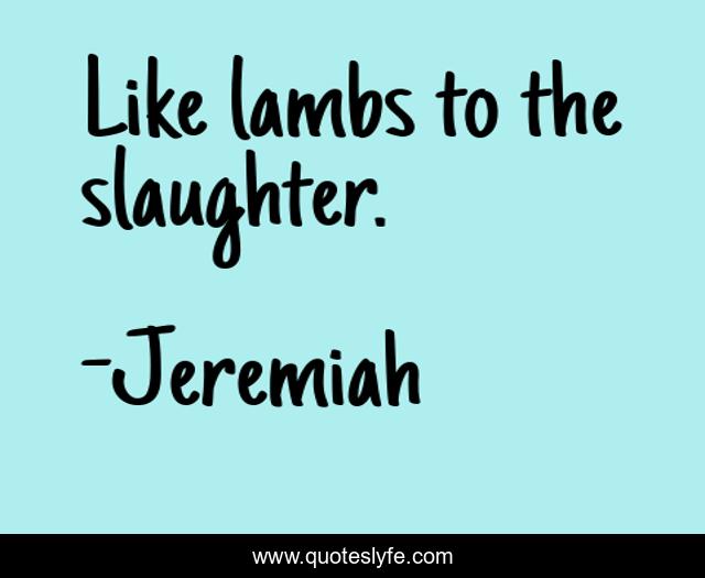 "Jeremiah Quotes." Quoteslyfe.com, 2025. Fri. 05 Dec. 2025. <https://www.quoteslyfe.com/quote/Like-lambs-to-the-slaughter-269388>.