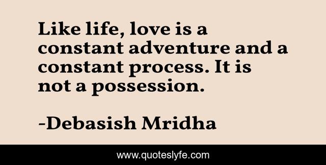 This page presents the quote "Like life, love is a constant adventure and a constant process. It is not a possession.". Author of this quote is Debasish Mridha. This quote is about love-is-a-constant-adventure, love, philosophy, debasish-mridha, quotes, debasish-mridha-md, inspirational, enthusiasm, love-is-not-a-possession,.