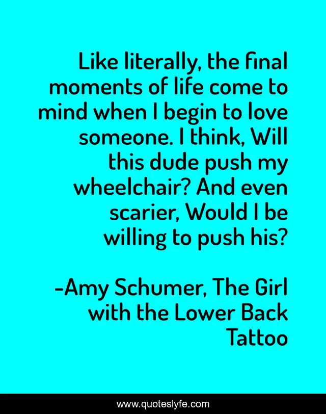 "Amy Schumer, The Girl with the Lower Back Tattoo Quotes." Quoteslyfe.com, 2025. Sat. 06 Dec. 2025. <https://www.quoteslyfe.com/quote/Like-literally-the-final-moments-of-life-248246>.