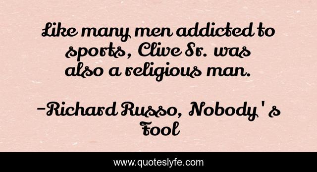 This page presents the quote "Like many men addicted to sports, Clive Sr. was also a religious man.". Author of this quote is Richard Russo, Nobody's Fool. This quote is about religion, sports,.