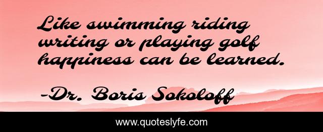 This page presents the quote "Like swimming riding writing or playing golf happiness can be learned.". Author of this quote is Dr. Boris Sokoloff. .