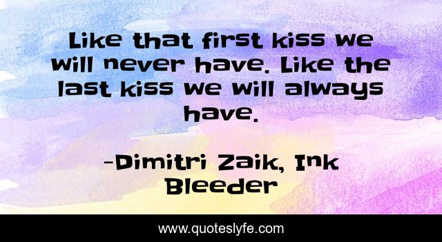 "Dimitri Zaik, Ink Bleeder Quotes." Quoteslyfe.com, 2025. Sat. 06 Dec. 2025. <https://www.quoteslyfe.com/quote/Like-that-first-kiss-we-will-never-122914>.