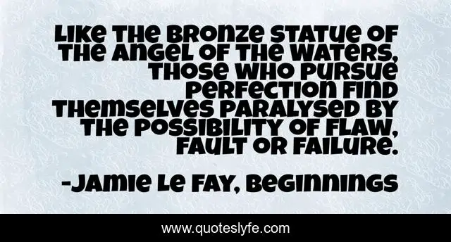 This page presents the quote "Like the bronze statue of the Angel of the Waters, those who pursue perfection find themselves paralysed by the possibility of flaw, fault or failure.". Author of this quote is Jamie Le Fay, Beginnings. This quote is about central-park, failure, perfection, bethesda, perfectionism,.