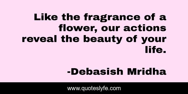 This page presents the quote "Like the fragrance of a flower, our actions reveal the beauty of your life.". Author of this quote is Debasish Mridha. This quote is about fragrance-of-a-flower, debasish, mridha, philosophy, debasish-mridha, actions, beauty-of-life,.