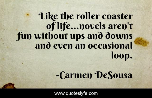 This page presents the quote "Like the roller coaster of life...novels aren't fun without ups and downs and even an occasional loop.". Author of this quote is Carmen DeSousa. This quote is about life, novels, tragedy-sad-death-despair, books, happy-ever-after, reading,.