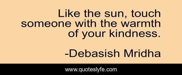 This page presents the quote "Like the sun, touch someone with the warmth of your kindness.". Author of this quote is Debasish Mridha. This quote is about be-like-the-sun, warmth-of-kindness, philosophy, debasish-mridha, quotes, debasish-mridha-md, inspirational, enthusiasm, touch-someone,.