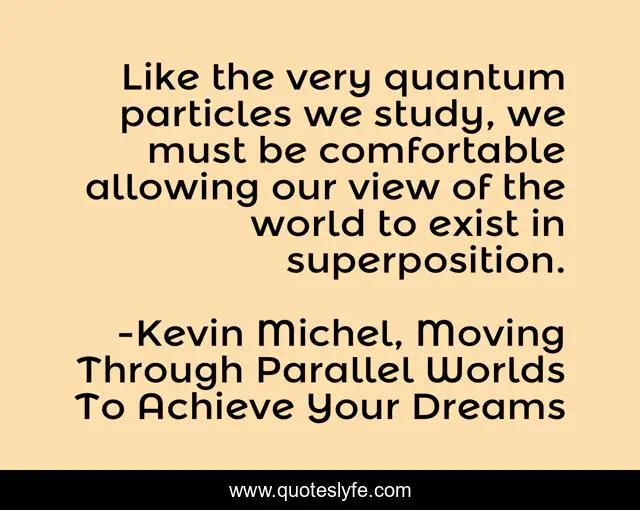 "Kevin Michel, Moving Through Parallel Worlds To Achieve Your Dreams Quotes." Quoteslyfe.com, 2025. Sat. 06 Dec. 2025. <https://www.quoteslyfe.com/quote/Like-the-very-quantum-particles-we-study-94174>.