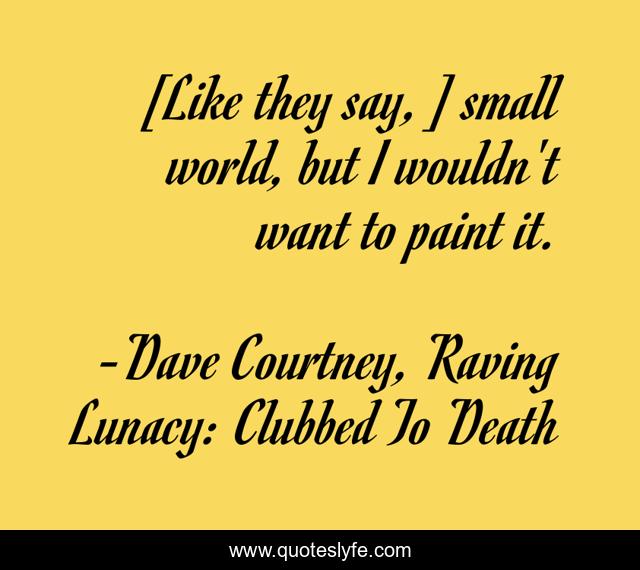 This page presents the quote "[Like they say, ] small world, but I wouldn't want to paint it.". Author of this quote is Dave Courtney, Raving Lunacy: Clubbed To Death. .