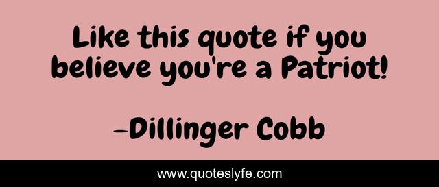 This page presents the quote "Like this quote if you believe you're a Patriot!". Author of this quote is Dillinger Cobb. This quote is about america, patriotism, american-pride,.