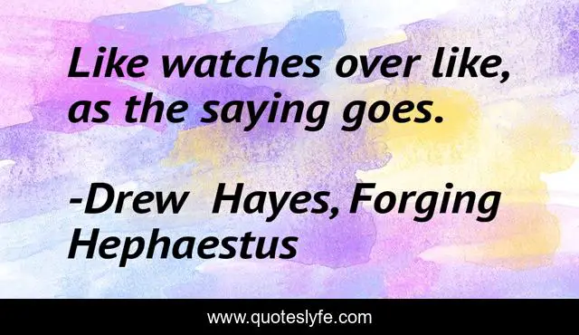 "Drew Hayes, Forging Hephaestus Quotes." Quoteslyfe.com, 2025. Mon. 08 Dec. 2025. <https://www.quoteslyfe.com/quote/Like-watches-over-like-as-the-saying-252066>.
