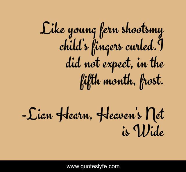 This page presents the quote "Like young fern shootsmy child's fingers curled.I did not expect, in the fifth month, frost.". Author of this quote is Lian Hearn, Heaven's Net is Wide. This quote is about poem, death, sorrow, grief, child, baby,.