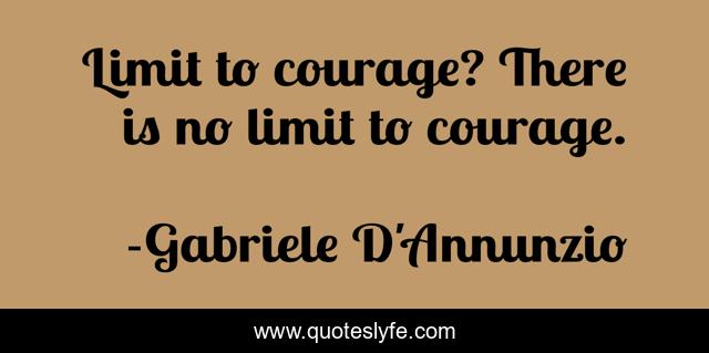 This page presents the quote "Limit to courage? There is no limit to courage.". Author of this quote is Gabriele D'Annunzio. .