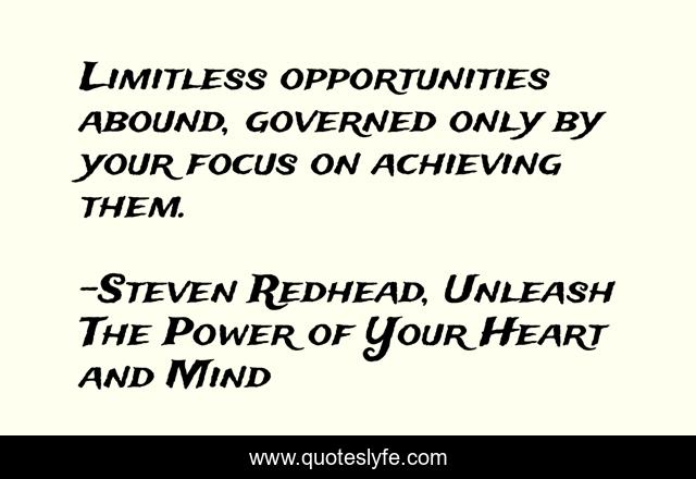 "Steven Redhead, Unleash The Power of Your Heart and Mind Quotes." Quoteslyfe.com, 2025. Mon. 08 Dec. 2025. <https://www.quoteslyfe.com/quote/Limitless-opportunities-abound-governed-only-by-your-187472>.