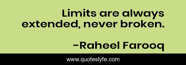 "Raheel Farooq Quotes." Quoteslyfe.com, 2025. Sun. 14 Dec. 2025. <https://www.quoteslyfe.com/quote/Limits-are-always-extended-never-broken-252906>.